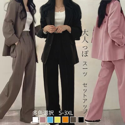 春 スーツ セットアップ レディース カジュアルゆったり 通勤 ジャケット ワイドパンツ 二点セット 春 アウター フォーマル ビジネススーツ ママ スーツ 卒園式