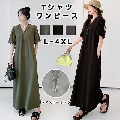 シャツワンピース 夏 レディースロング ワンピース 半袖 ロング丈マキシ丈体型カバー無地ゆったり着痩せ304050