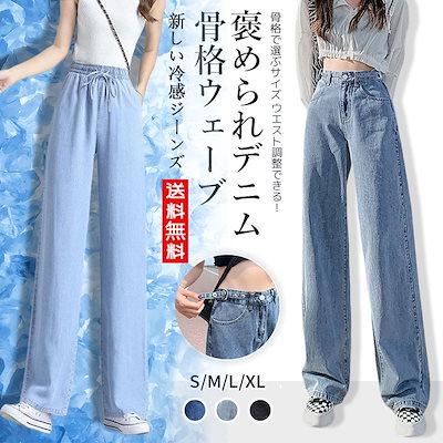 3枚200OFF 冷感ジーンズ ウエスト調整可で華奢見え-ハイウエストストレートデニムパンツ-ジーンズ-デニム-レディース 春 夏 韓国ファッション 四節適用着痩せ脚長効果