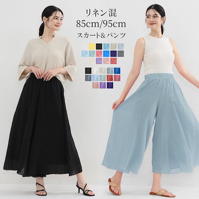 累計20,000着以上販売 魔法の麻混ワイドパンツ 空気のような履き心地 全16色 ロングパンツ スカート 清涼感 リネンパンツ リボン ストレッチリネン