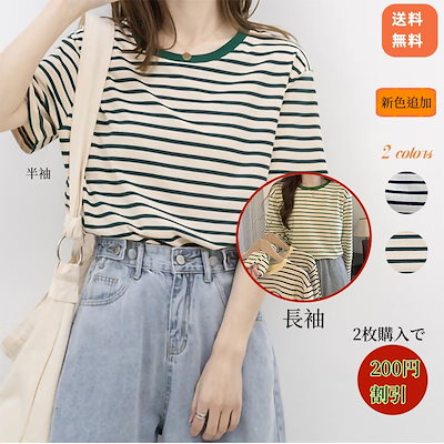 長袖追加 Tシャツ レディース 半袖 ボーダー 夏 カットソー 半袖 レイヤード プルオーバー tシャツ クルーネック シャツブラウス レディース トップ