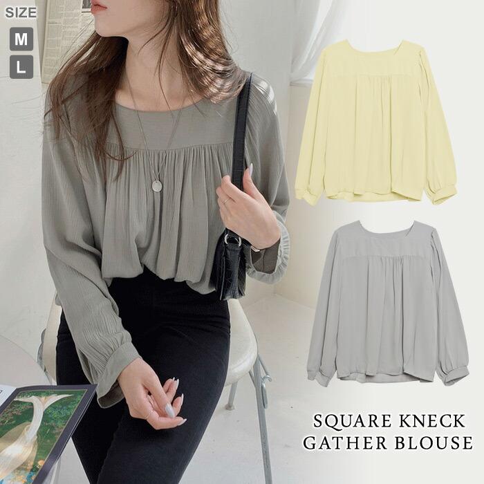 ブラウス レディース 春 ブラウスシャツ とろみ シャツ トップス ベージュ グレー 無地 長袖 チュニック スクエアネック 20代 30代 40代