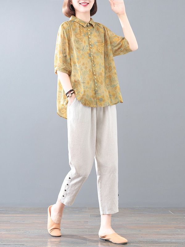 涼しく楽ちんセットアップ レディース 夏 韓国 半袖 2024新型ゆとり遮肉痩せ見えママ着花柄2点セット女 ルームウェア セットアップ スウェット上下セット スーツ