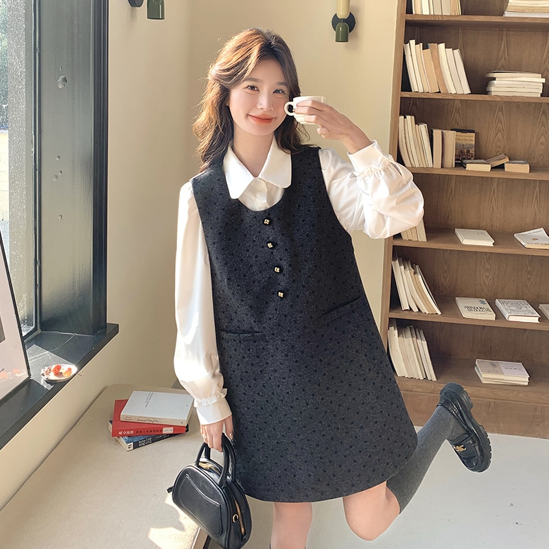 ポルカドットツイードベストスカート2点セット 2025新作重ねシャツ 韓国雰囲気着こなしセット セットアップ
