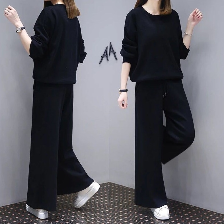 ピンクカシミアワイド - レッグパンツ女性秋と冬2023年新しいハイウエストの垂直感覚ゆるいカジュアルとベルベットニットストレートパンツ ロングパンツ