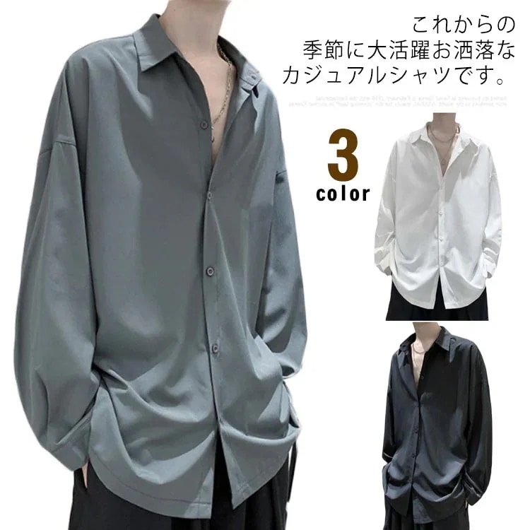 シャツ メンズ トップス 長袖 カジュアルシャツ ワイシャツ 無地 ビッグシルエット 韓国ファッション オーバーサイズ 大きいサイズ 軽い 柔らかい ゆったり 春秋