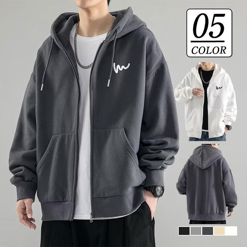 パーカー メンズ ジップアップパーカー 長袖 秋物 春服 フード付き ジャケット トップス アウター スウェット 羽織り ゆったり かっこいい通勤 カジュアル