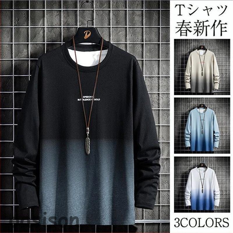 大人気 Tシャツ メンズ 長袖 グラデーション トップス ゆったり おしゃれ 無地 部屋着 お兄系 春秋 大きいサイズ ゆったり かっこいい