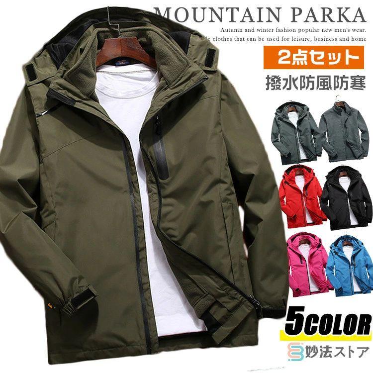 マウンテンパーカー メンズ レディース 防水 防風 防寒 3way 冬用 冬服 暖かい アウトドアジャケット 登山ウェア フリースライナー付き 脱着可 2点セット 登山