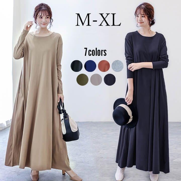マキシワンピース レディース Tシャツ 無地 長袖 フレア ワンピース 産後 妊婦 大人 カジュアル オーバーサイズ シンプル Tシャツワンピ