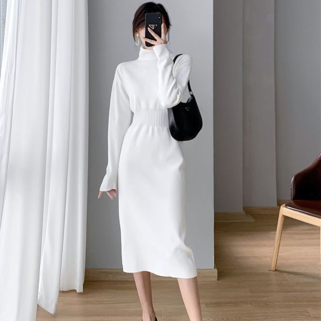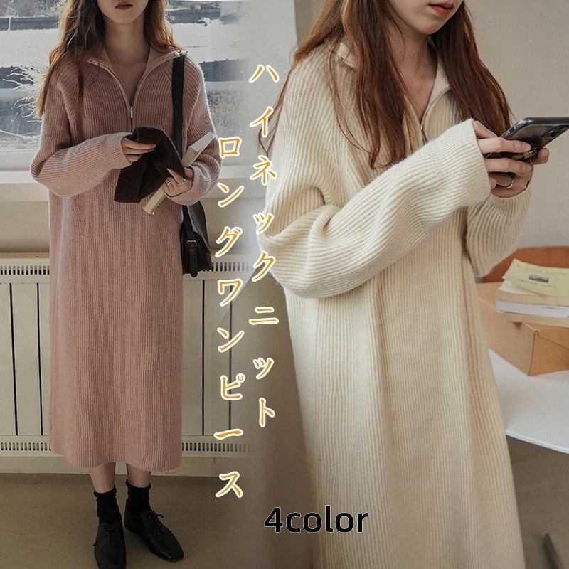 新作 おしゃれ 気質 ワンピース ハイネック 長袖 ニットワンピース 通勤 ロングワンピース 大きめサイズ ニットワンピ