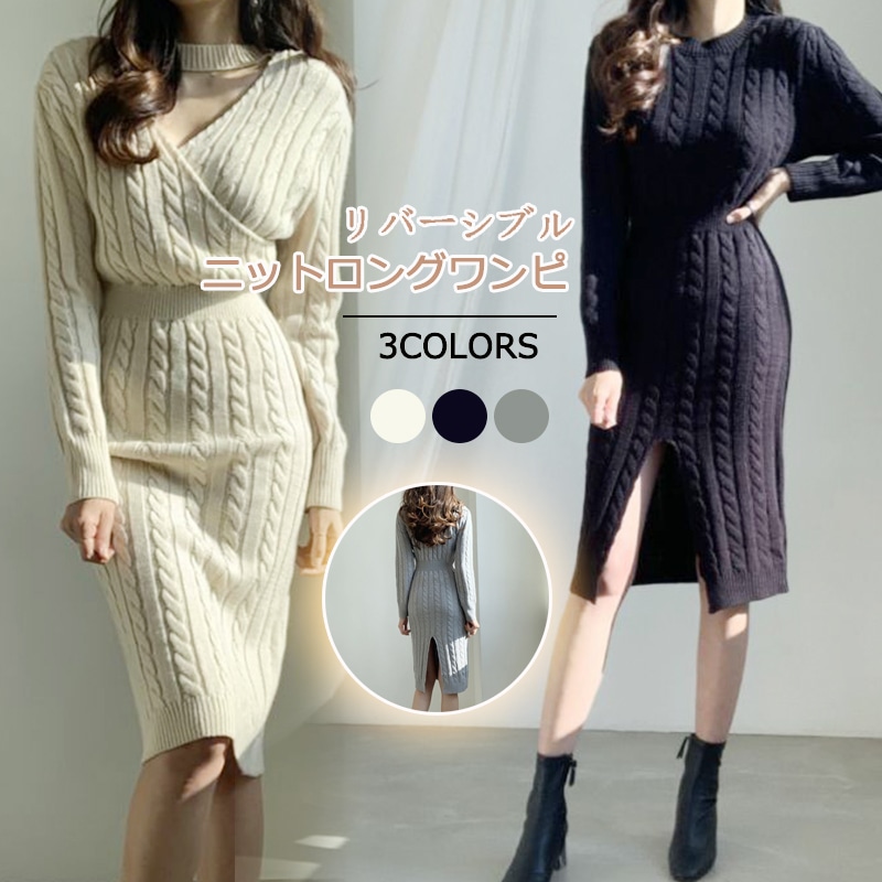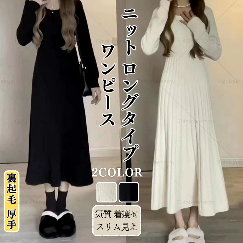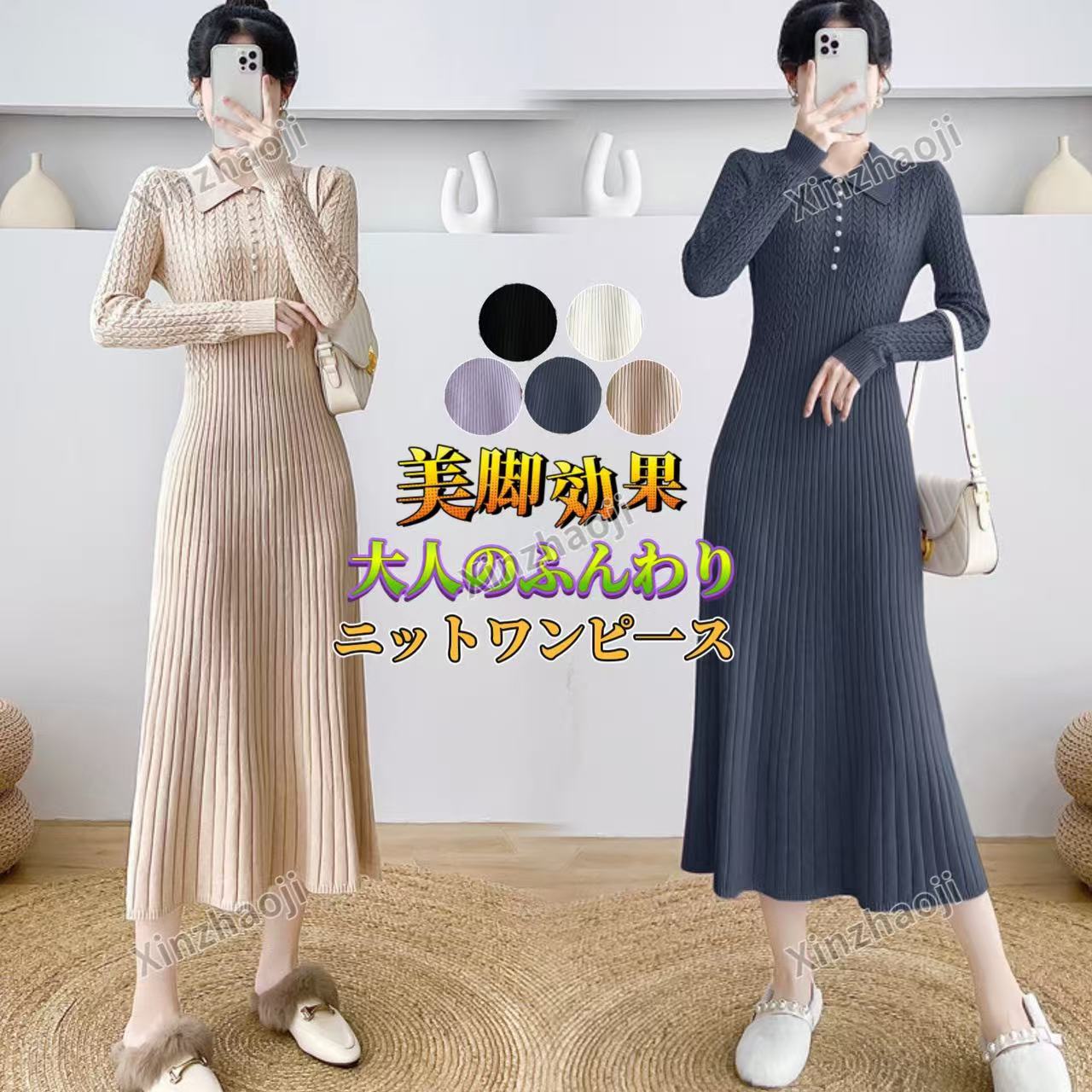 秋 冬 ニットワンピース着痩せ ロングワンピース 厚手 韓国ファッション ワンピース レディース 長袖ワンピース ニットワンピ