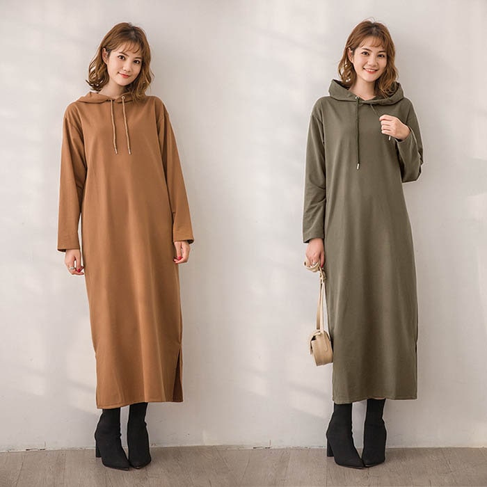 パーカー ワンピース フード付 裏起毛 長袖ロング・マキシ丈ワンピ ワンピース・ドレス レディース服