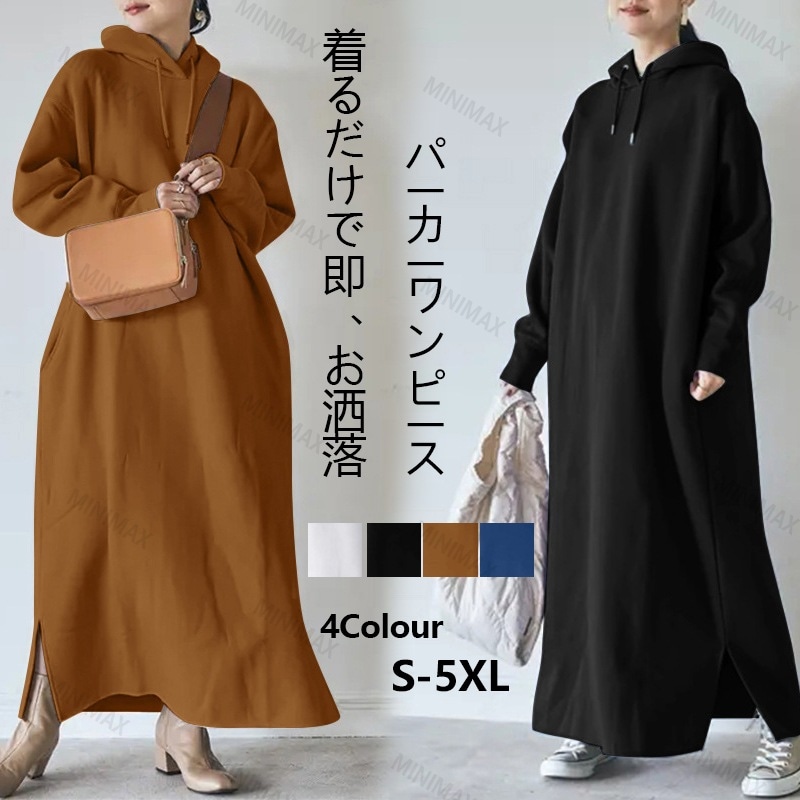 ワンピース ロングワンピース レディース 秋冬 インナーワンピース 長袖 スウェット パーカーワンピース 体型カバー 秋 冬 大きいサイズ 部屋着