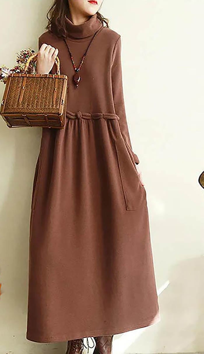ワンピース 秋 長袖 レディース きれいめ 秋冬 秋物 ロングワンピース ロング丈 ワンピ大きいサイズ 体型カバー ハイネック ギャーザー ゆったり カジュアル 大人 可愛い着痩せ 着瘦せ Aライン