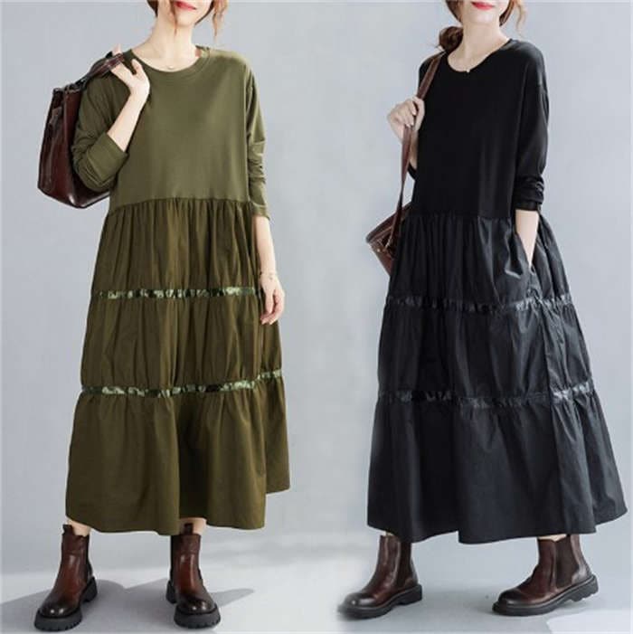 ティアード ワンピース ロングワンピース ロング丈 春 秋 レディース ふんわり ワンピース 長袖 ティアード ガーリー アンティーク ヴィンテージ カジュアル マキシ丈 ロングワンピ ゆったり