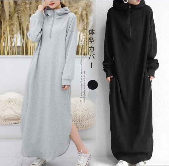 パーカーワンピース レディース スウェット ロングパーカー ロングワンピース 長袖ロング マキシ丈ワンピ