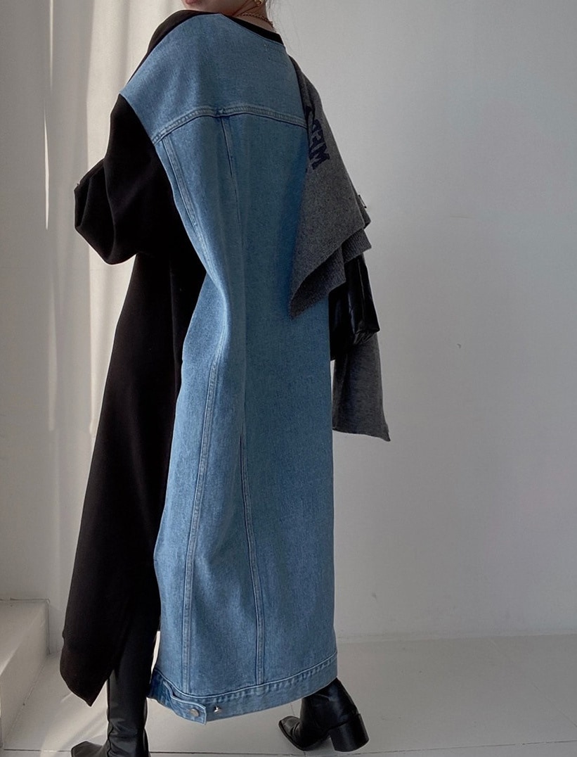 ティアードワンピース レディース ワンピース デニム ロング 七分袖 きれいめ ロングワンピ 秋 冬 春 Aライン 2WAY ミモレ丈 ロング丈 ひざ下 ティアード ゆったり 長袖ワンピ デニムワンピ
