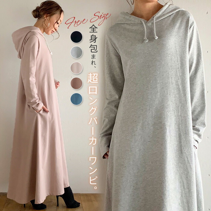 パーカーワンピース レディース スウェ 長袖ロング・マキシ丈ワンピ ワンピース・ドレス レディース服
