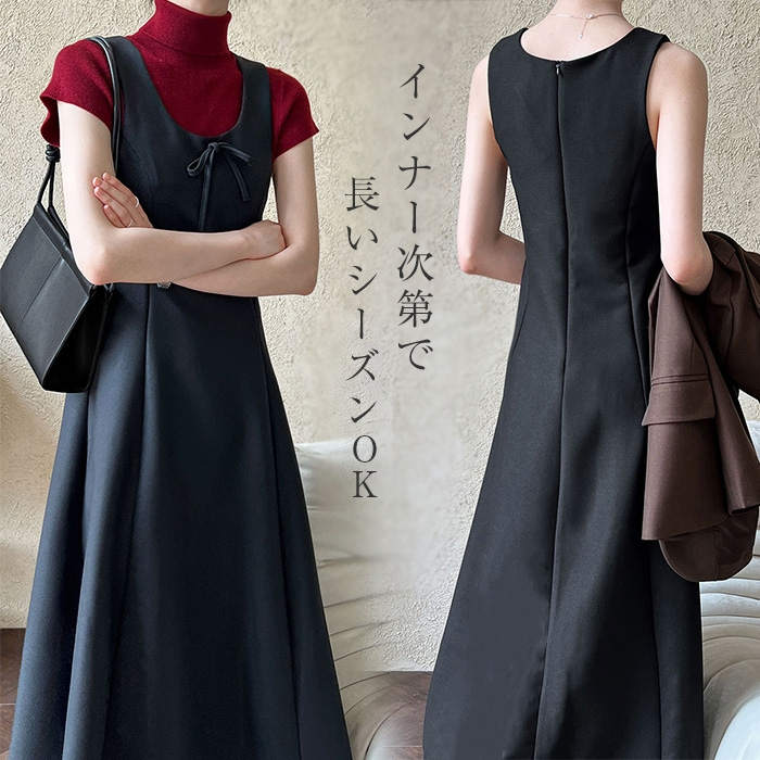 ワンピース 秋冬 ノースリーブ ロング ロングワンピース ワンピ Uネック 黒 フレア ロング丈 大きいサイズ タンクワンピース ドレス ノースリワンピ ミモレ丈 タンクワンピース シンプル フォーマ