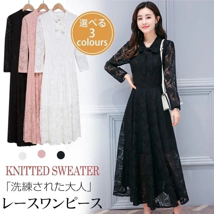 ワンピース結婚式ドレスロングドレスレースレディースフォーマルワンピース二次会ドレスAラインパーティドレス秋冬ワンピース大きいサイズwj4563