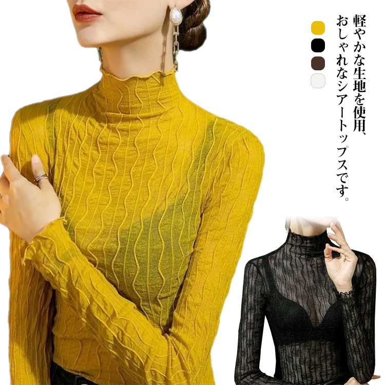シースルシアートップスタートルネックインナー長袖レースカットソーレディースインナーウェアハイネックtシャツ春夏長袖タイト透け感大人母のギフト
