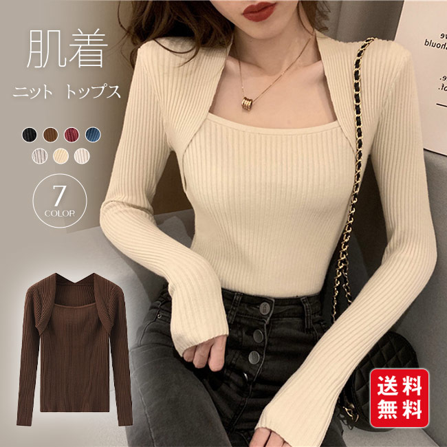 ニット トップス レディース 長袖 リブ ストレッチ インナー 肌着 長袖Tシャツ Tシャツ カットソー
