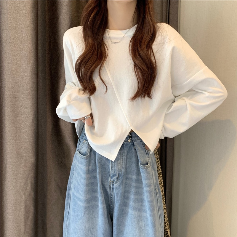 Tシャツ 2025秋の新しい緩い長袖Tシャツ女性日本と韓国カジュアルボトリングシャツ短い段落ブラウス薄いTシャツロンT Tシャツ カットソー