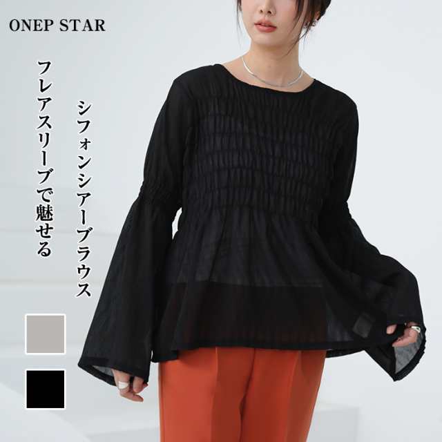 シフォンブラウス シアーブラウス ボリューム袖