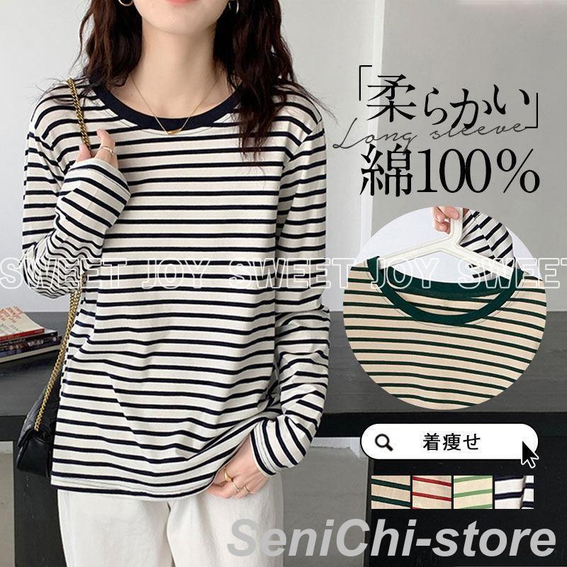 人気沸騰 新品 tシャツ 長袖tシャツ レディース 綿100% コットン トップス 長袖 カットソー ブラウス ストライプ 秋 冬 春 夏 着痩せ カジュアル 新作 通学
