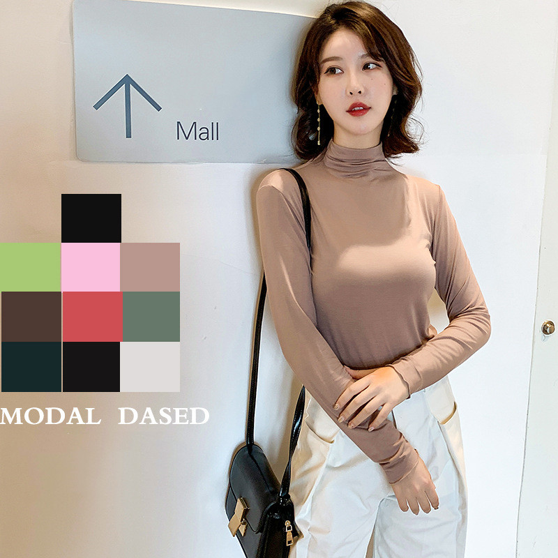 Tシャツ トップス レディース 長袖 タートルネック インナー シンプル 長袖 無地 カジュアル 春 秋 ブラック 黒 カラバリ モダール 20代 30代 40代 50代