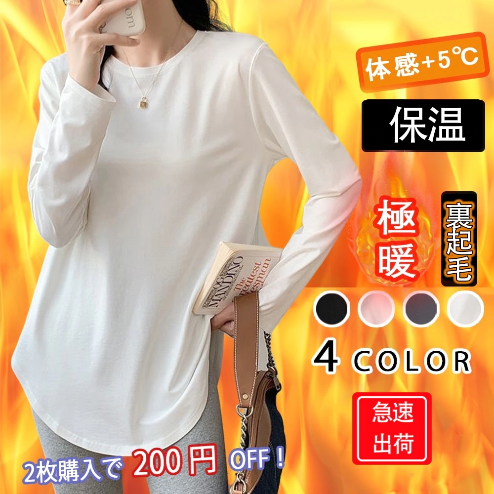 裏起毛 厚手 インナー カットソー 長袖 Tシャツ ロング丈 ロンT レディース 肌触り トップス ロングTシャツ ゆったり レイヤードトップス 大きいサイズ