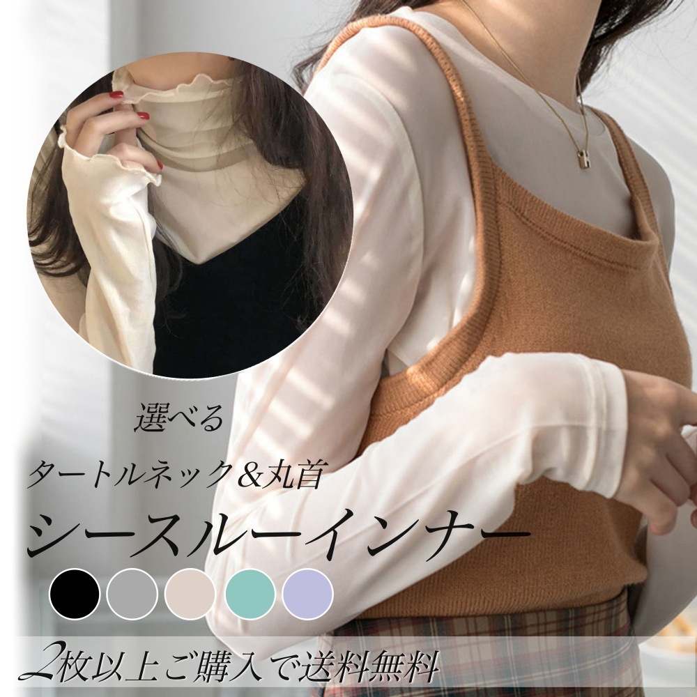 特価3色セット 国内即発送 シースルーインナー シアーカットソー タートルネック 透け感重ね着コーディ Tシャツ カットソー