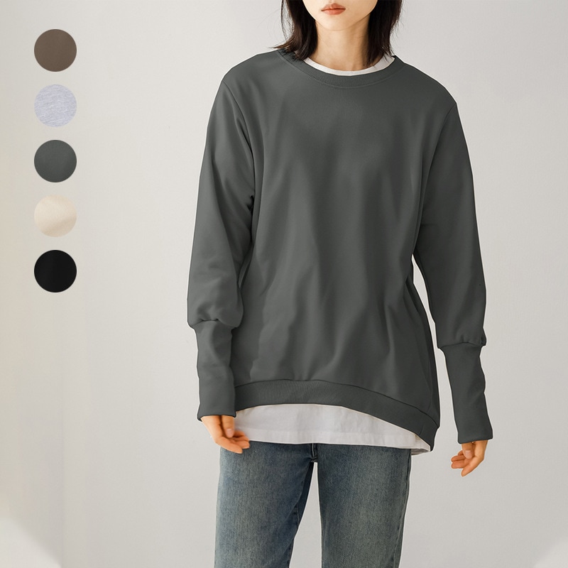 スウェット 長袖 フェイクレイヤード 韓国ファッション ゆったり トップス レディース パーカー 体型カバー 着痩せ Tシャツ Tシャツ カットソー