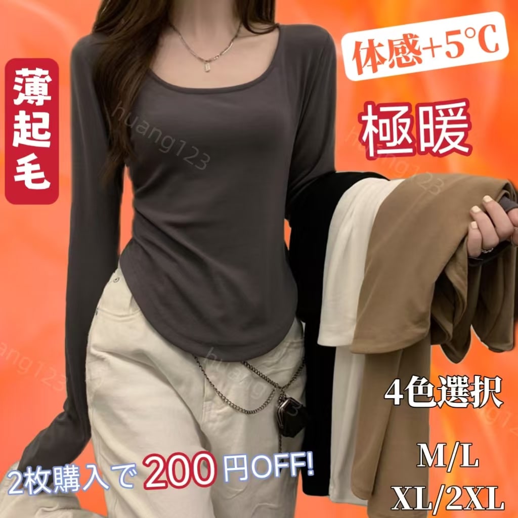 薄起毛 厚手 インナー 秋冬 下着 カットソー 肌着 長袖 Tシャツ 柔らか コーデ 超極暖インナー きれいめ おしゃれ
