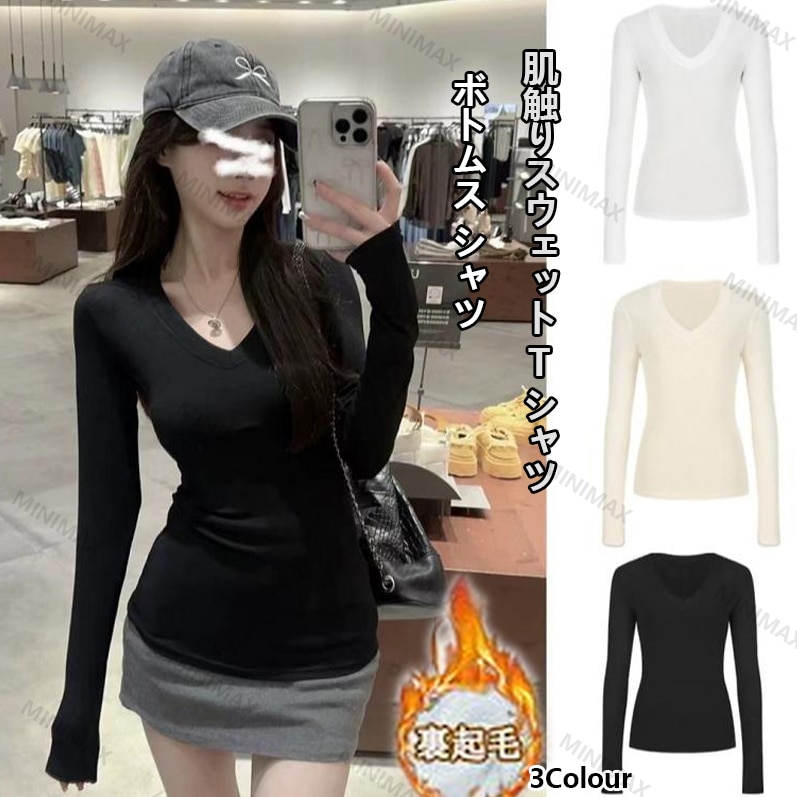 vネック カットソー 秋冬 微起毛 レディース トップス 長袖 インナー 定番 シンプル Tシャツ レディース 柔らか コーデ 超極暖インナー きれいめ おしゃれ