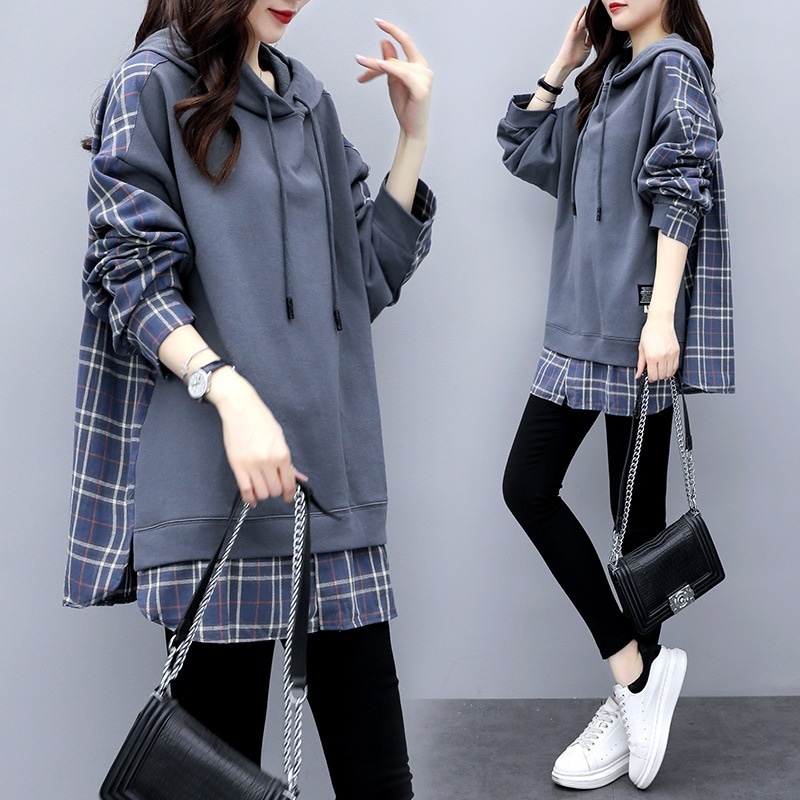 チェック 長袖 マウンテンパーカー トレーナーフード付き 大きめサイズ トップス アウター 百掛け 裏起毛 運動 スウエット パーカー ロンT 裏起毛ファッ