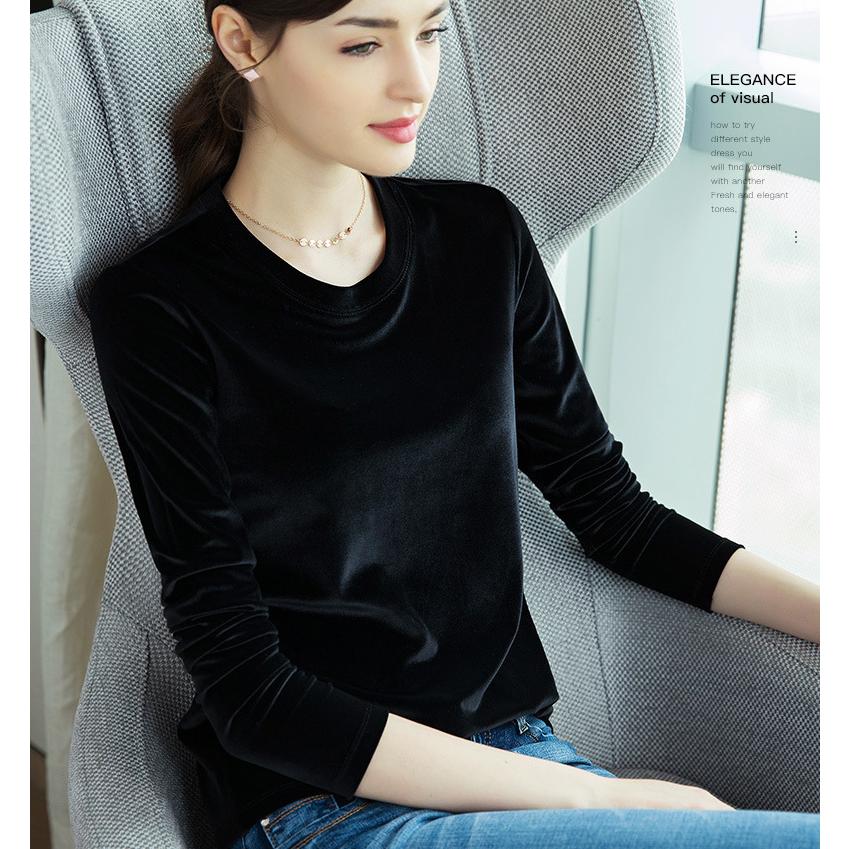 Tシャツ ベロアトップス 無地 シンプル ベロア 長袖 丸首 レディース トップス Tシャツ カットソー