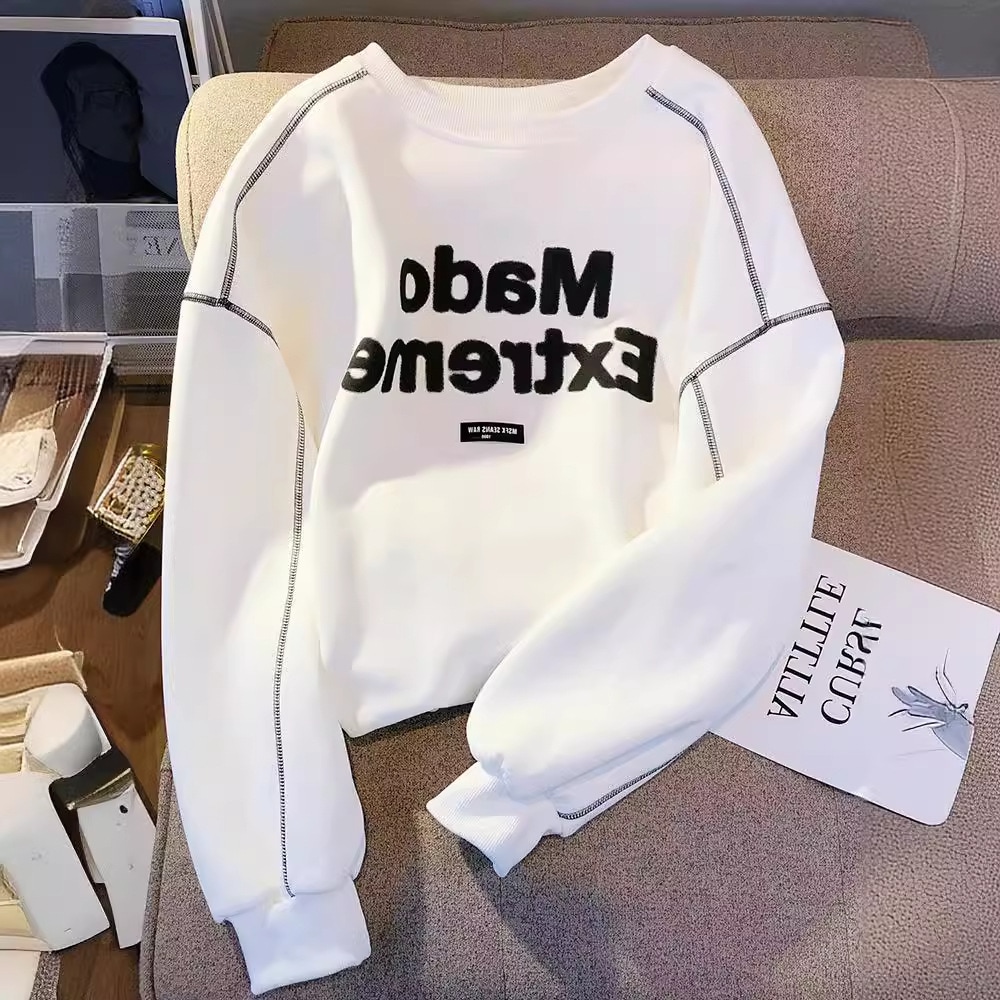 秋冬のインナーに日系アルファベットの丸首の白い衛衣女性の薄手の新型ゆったりとした小柄なデザイン感が人気 Tシャツ カットソー