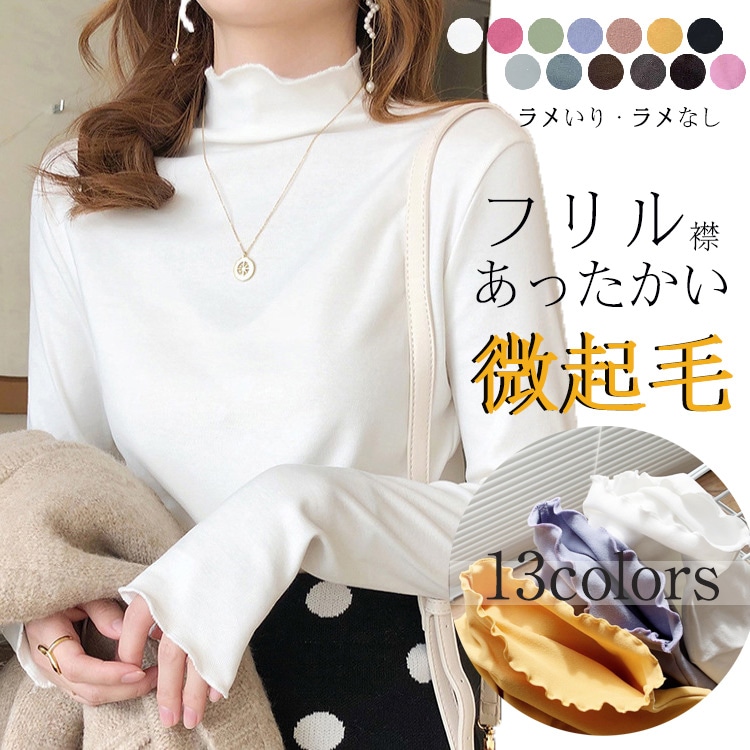 カットソー 秋冬 微起毛 プチハイネック レディース トップス フリル 長袖 ハイネック インナー 春 ストレッチ 伸びる 柔らか コーデ レイヤード きれいめ おしゃれ フリルネック