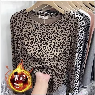 裹起毛2024春と秋の新ファッション ヒョウ柄 タイダイ薄手長袖 Tシャツ ラウンドネック ボトムシャツ 女性 韓国ファッション