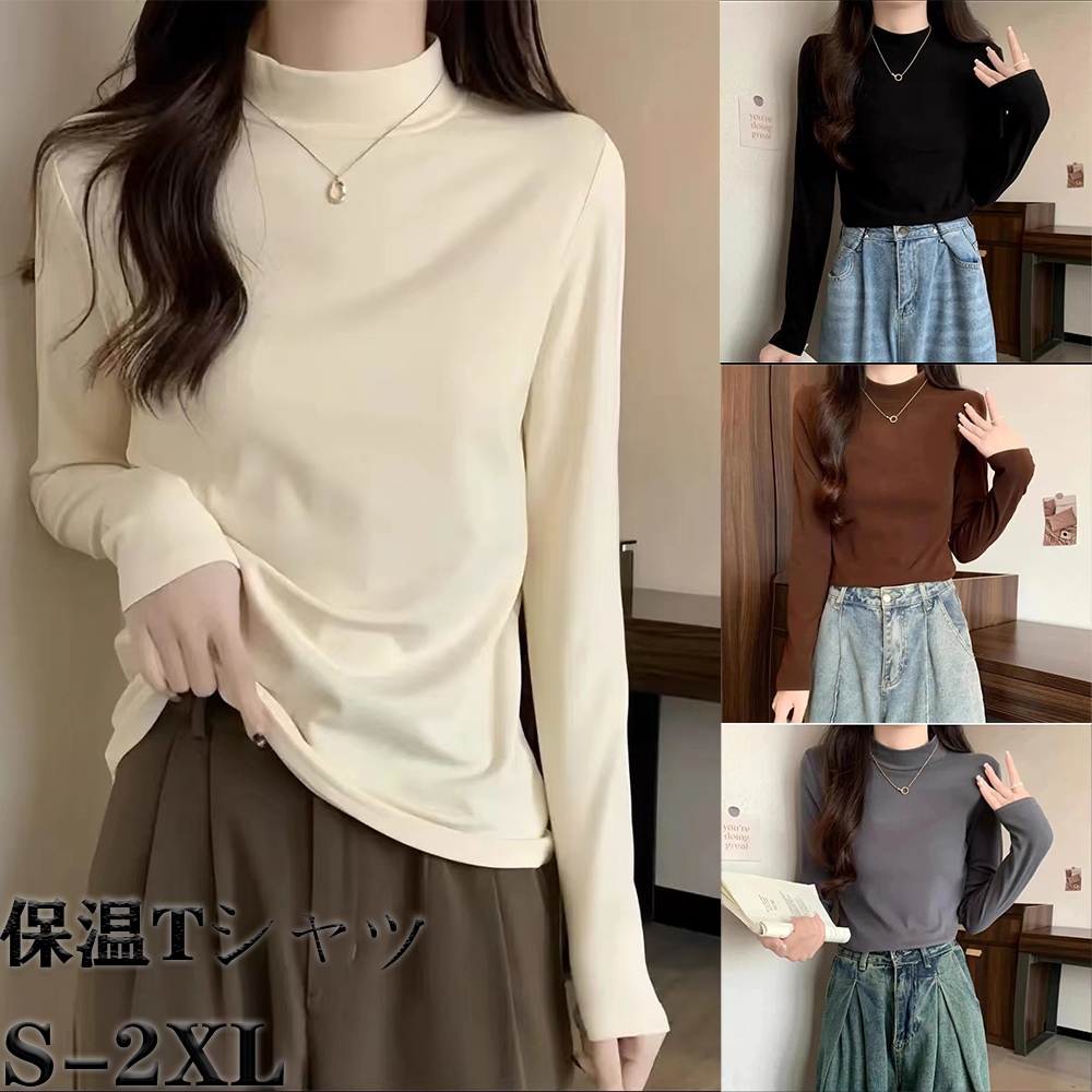 Tシャツ レディース トップス 長袖 裏起毛 裏ボア ハイネック カットソー ティーシャツ 着痩せ カジュアル 体型カバー インナー 重ね着 ルームウェア ブラウス