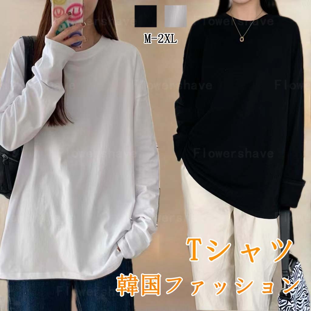 2024秋冬新作韓国ファッション人気商品 Tシャツ無地シンプル長袖 レディース トップス カットソー 上着トレーナースウェットトップス ストレッチドロップショルダー