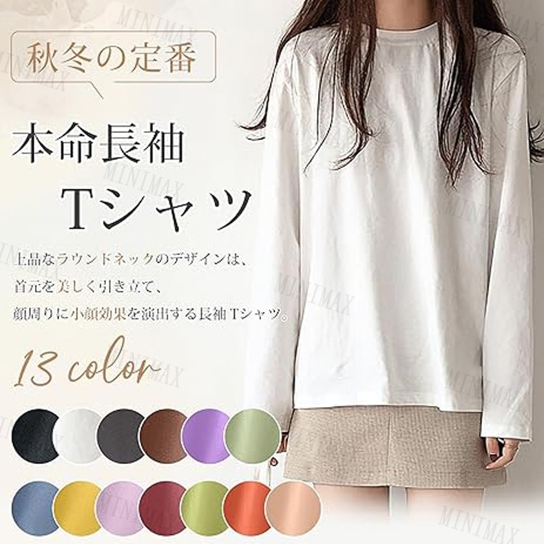長袖Tシャツ コットン 長袖 Tシャツ 丸襟 秋服 トップス ウェア おしゃれ かわいい 定番 シンプル Tシャツ レディース 長袖 カットソー トップス