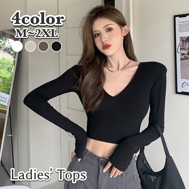 カットソー 長袖 ショート丈 レディース 女性用 トップス Vネック Tシャツ 無地 着回し 定番 大きいサイズあり おしゃれ カジュアル シンプル お出かけ 部屋着 デイリー デート 旅行 女の子