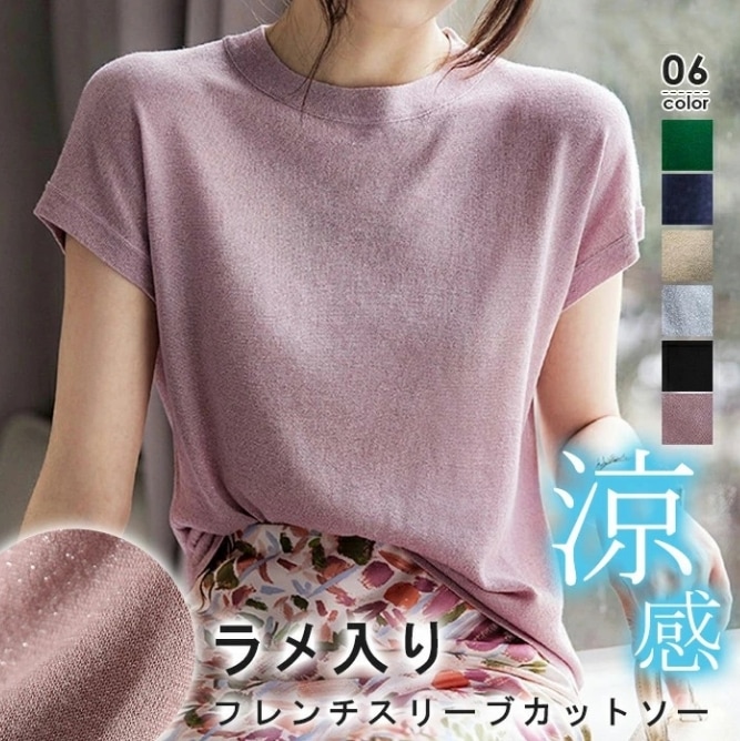 冷感Tシャツ 半袖 レディース フレンチスリーブ クルーネック Tシャツ トップス カットソー 半袖 夏服 ラウンドヘム レディース ブラウス 着回し 韓国ファッション