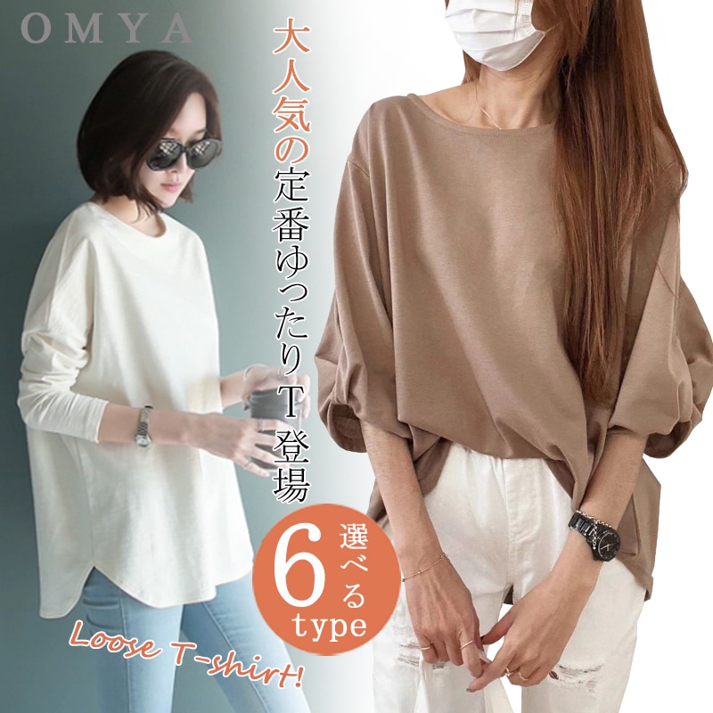 大人気ロングセラーのゆったりTシャツ 定番レディースTシャツ 半袖 長袖 七分袖 レディーストップス ゆったり シンプル ビッグT Tシャツ 無地 ボーダー 春夏