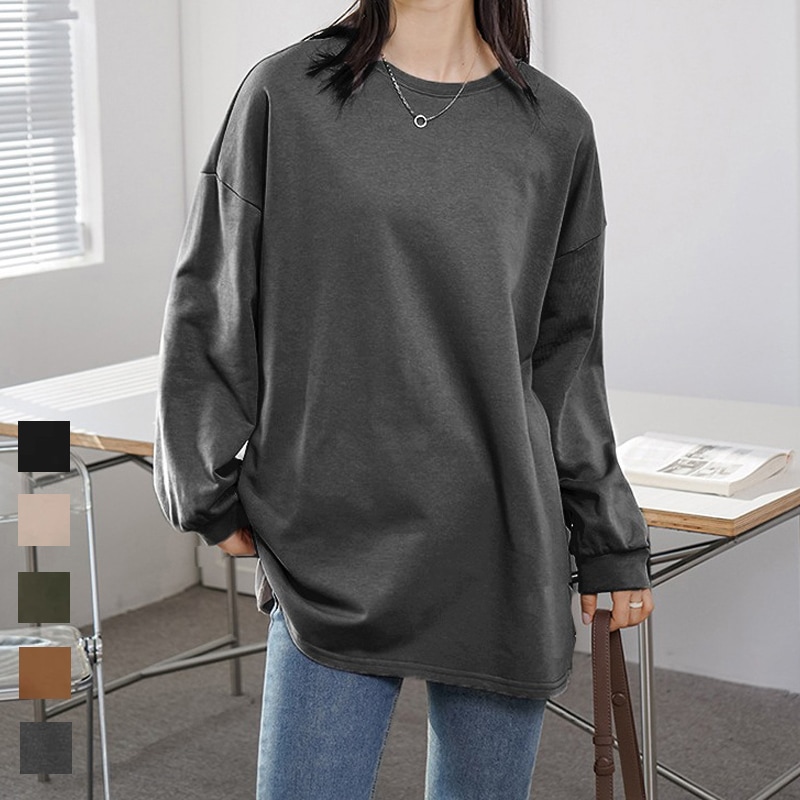 長袖 tシャツ レディースロングTシャツ トップス 無地 韓国 パーカー レディースファッション Tシャツ カットソー