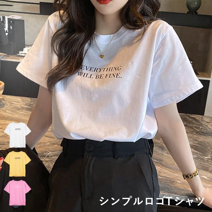 Tシャツ レディース 春 夏 春夏 白 カットソー トップス ロゴ Tシャツ 伸縮性 ゆったり ストレッチ カジュアル ロゴtシャツ 半袖トップス きれいめ 半袖
