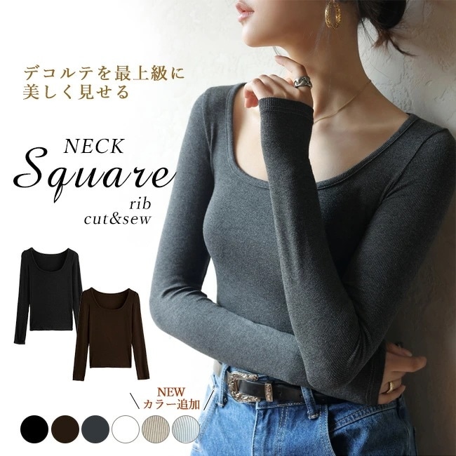 深あき 首広い 開く スクエアネック リブ カットソー 長袖 レディース 柔らかインナー 長袖 天然素材 アンダーシャツ 女性 レディースインナー インナーシャツ アンダーウ
